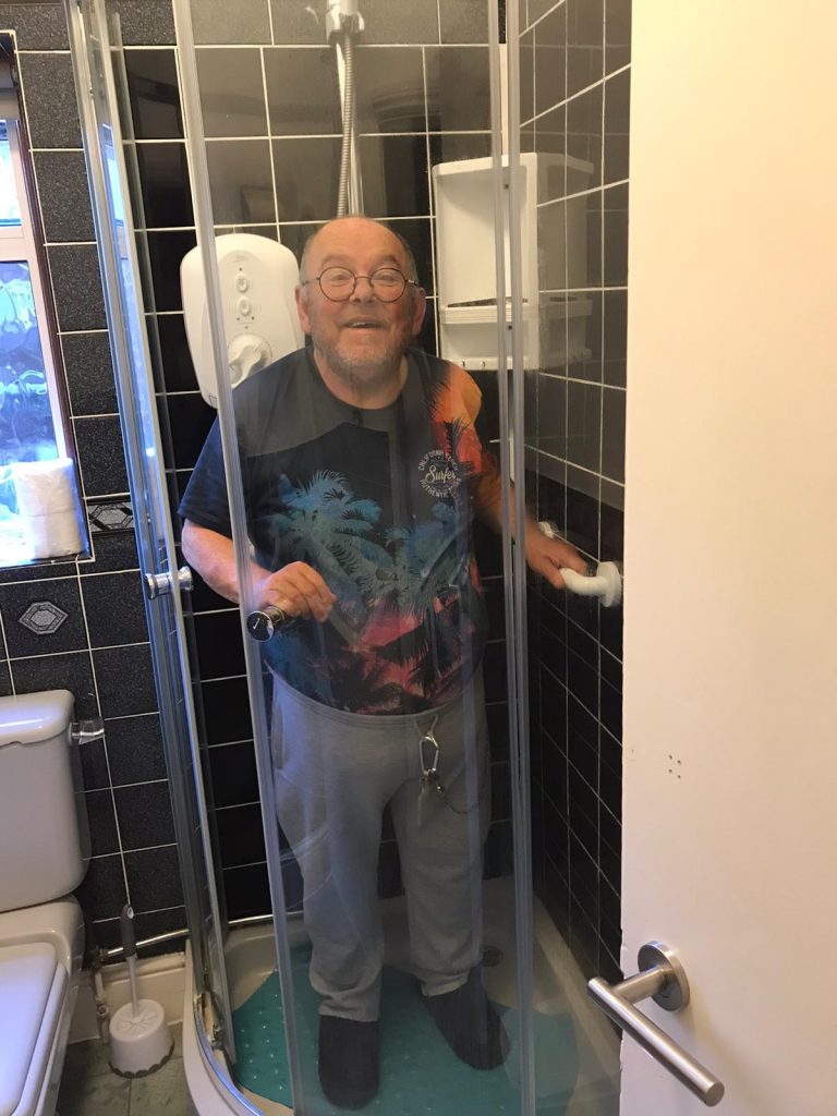 “Meet Elvis who lives at Grosvenor Road. Elvis recently had a new shower fitted in his home by our maintenance contractor Headway UK.  Elvis also agreed to roll up his sleeves and work really hard to tidy his room so that HeadwayUK could decorate it.  He did this, which in itself was a big of work.